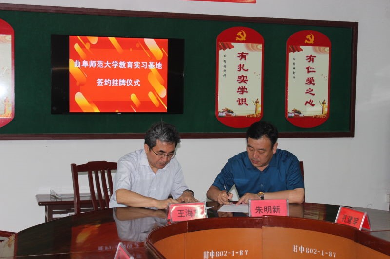 6月5日,K体育·(sports)官方网站教育实习基地签约挂牌仪式在曲阜市时庄街道中学举行。我院副院长王海龙与时庄中学校长朱明新代表双方签署合作协议,并为教育实习基地揭牌。曲阜市教师教育中心高中部主任王德才,时庄中学教务处与年级部领导及教师代表,我院胡象岭教授、刘世东老师、焦娜老师、李建彬老师参加了仪式。
