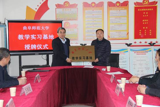 王海龙和马卫华代表双方学校签署协议,共同为曲阜师范大学教学实习基地揭牌。