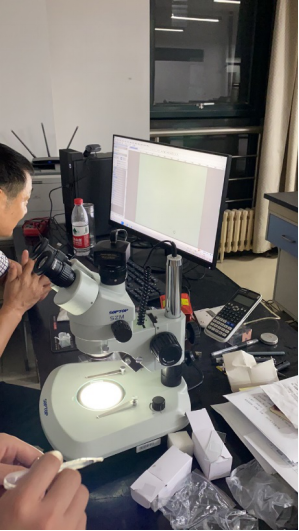 高中物理的课题是分子的热运动。我最开始选择的是本节的前半部分扩散现象。后来经过和老师们的讨论之后认识到,在高中阶段讲扩散现象要建立在初中的认知基础之上去讲,而且15分钟只讲扩散教学内容略显单薄,所以又改为只讲布朗运动。为了完成布朗运动的实验,孟老师为我们精心挑选了高倍光学显微镜,带领我们一遍又一遍地做实验,成功观察到了布朗运动。随后老师又指导我们配制不同种悬浊液以及同种不同浓度的悬浊液,一一进行观测,最后选定了效果最好的药粉微粒悬浊液进行授课时的观察对象。在我脑海中也再次响起师姐们的“有孟老师在,实验不用担心!”这句话,我对孟老师的敬佩之心又加了一份重量。