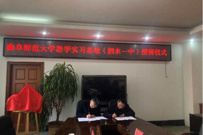 12月22日,曲阜师范大学教育实习基地签约、挂牌仪式在泗水一中举行。曲阜师范大学党委常委、副校长夏云杰,泗水一中校长杜宏伟出席仪式,教务处、K体育·(sports)官方网站等单位负责人,泗水一中校领导,教师代表等参加了活动。