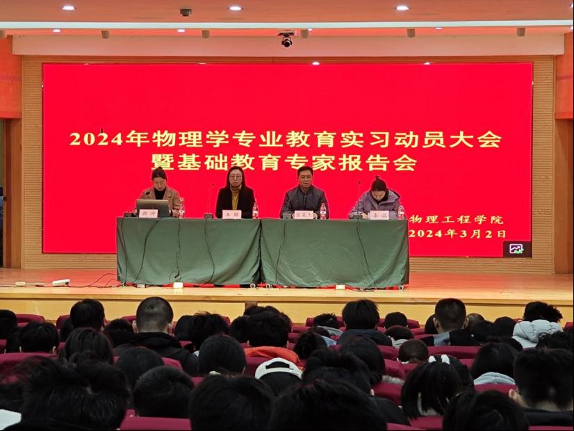 3月2日上午,K体育·(sports)官方网站2024年物理学(师范)专业教育集中实习动员大会在孔子会堂举行。K体育·(sports)官方网站党委副书记王琼、副院长张英杰、物理系主任李晶、2021级辅导员颜冲、校内指导教师和集中实习的2021级物理学(师范)专业学生参加动员大会。动员大会由张英杰主持。动员大会分为两部分,第一部分是实习安排和要求讲解,第二部分是基础教育专家报告会。
