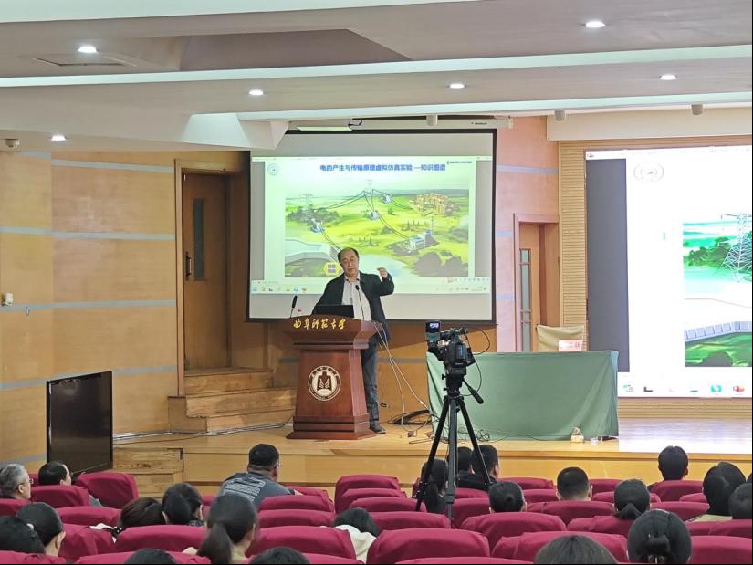 张汉壮教授从国家层面立德树人的政策发展历程解释了立德树人内化于心的重要意义。以“立德树人”为宗旨,张教授讲述了如何以课程建设为载体,践行好育人使命。以《物理学导论》课程为例,展示了教学过程、教学方法和课程教材的多维度有机融合,构建一体化物理学类课程育人模式,实现知识传授、能力培养、价值塑造的育人目标。报告中还分享了他的“现场教学”“AR演示”、“魔术演示”等相关视频,展示了生动有趣的课堂教学氛围。张教授强调,课程内涵建设与信息化教学手段相结合,注重能力培养与三观引领的多维度过程,以知识传授为载体,引领品行素养与科学能力培养,才能在传授知识的同时更好地发挥对学生能力培养和价值引领的作用。