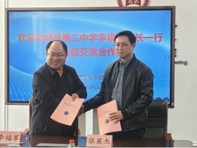 3月14日上午,武城县第二中学党委副书记、校长李福军、党委委员胡霞、教务处主任刘光锐、物理教研组组长黄绪涛一行到访我院。学院党委副书记王琼、副院长张英杰及相关教师代表共同参与座谈。双方围绕教研合作、大中物理课程改革、师范生教育实习、毕业生就业等展开深入探讨,并签署教研合作与课程改革共建协议,共同推动物理基础教育创新与尖优生人才培养。