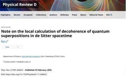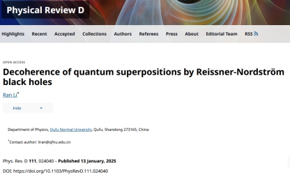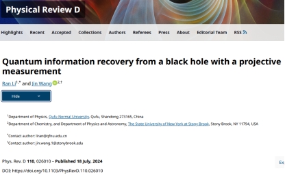 2024年以来,我院李然副教授在广义相对论和黑洞理论方向取得一系列研究进展,相关成果发表于《Physical Review D》和《European Physical Journal C》等国际学术期刊,包括PRD论文5篇和EPJC论文1篇,并指导本科生王力强同学在PRD发表论文1篇。上述研究成果均以曲阜师范大学为第一署名单位,并得到了纽约州立大学石溪分校汪劲教授的悉心指导与大力支持。