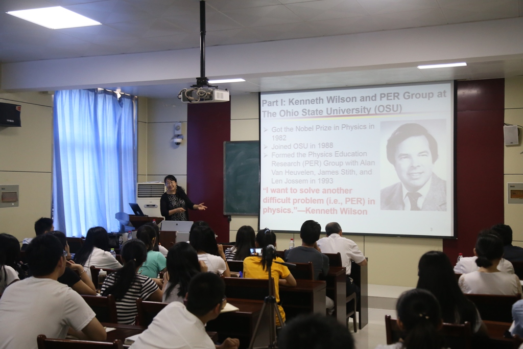 报告中邹学立教授以她的导师---诺贝尔物理学奖获得者肯尼斯·威尔逊关于教育研究的事例为切入点,从三个方面讲述了美国大学基础物理教学的现状,并结合案例介绍了美国新教学模式及学习成果的评估方式。