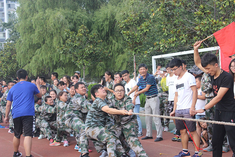 艰苦的军训并不枯燥,在教官的带领下,各个连队以学唱军歌、表演才艺、拔河比赛等活动丰富军训生活,调剂同学们的紧张情绪,也增进同学们和教官的感情。与此同时,我院学生会各部门分工负责、轮流值班,为我院新生的军训提供了有利的后勤服务保障。新生辅导员兼军训指导员李爱国老师每天都亲临现场检查军训工作的进展情况,及时与教官和参训同学交流,指导、鼓励同学们“坚持到底就是胜利”,教育同学们不但要学会歌唱《三大纪律八项注意》,而且要在军训期间和今后的大学生活中切实做到“一切行动听指挥”。