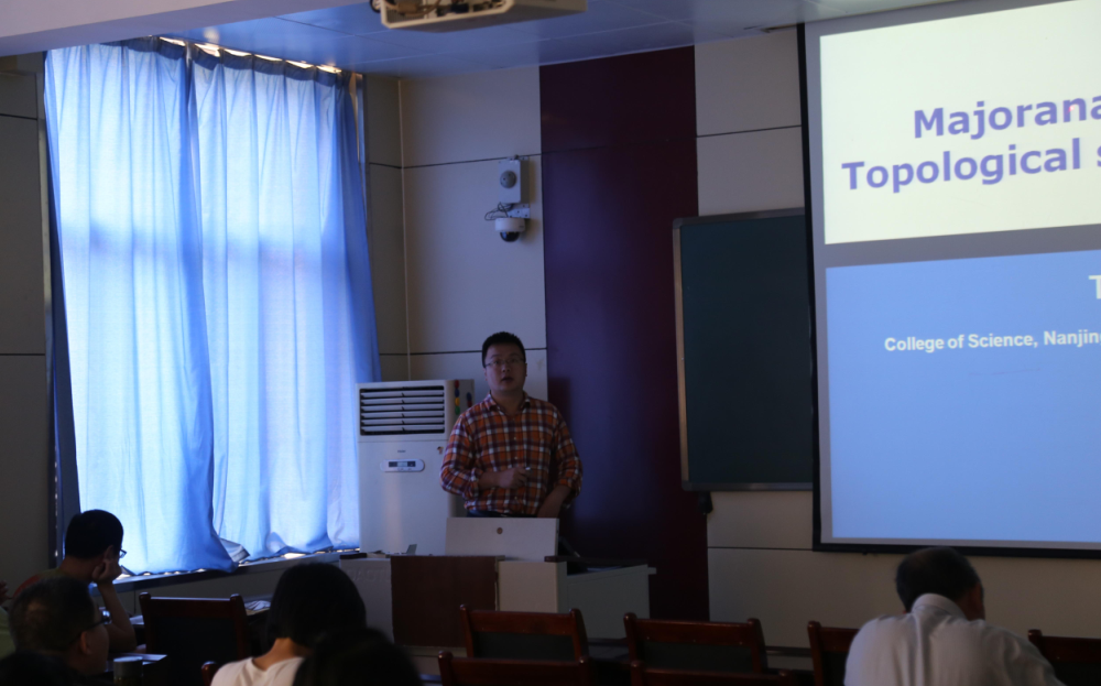 5月22日,南京航空航天大学周涛教授来我院进行访问,为我院师生做了一场题为“Majorana Fermions in Topological superconductors”的学术报告,并与师生进行了广泛交流。周教授详细地讲解了Majorana费米子在拓扑超导体研究方面的重要应用,并结合其本人的研究介绍了拓扑超导体有关的最新研究进展。周教授的讲解,使在场师生对凝聚态物理领域的超导理论研究有了新的了解,对我院师生的相关研究有很大的帮助意义。