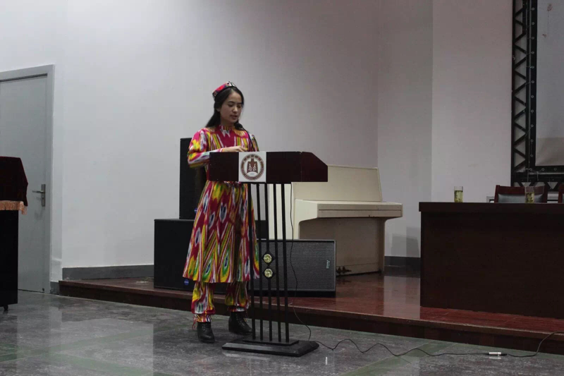 会议伊始,杨永明代表学生工作处和团委发表致辞,他表示,目前我校已经有29个少数民族的学生共计500余人,越来越多的少数民族学生进入大学校园对学生工作提出了新的挑战和要求,希望以本次民族文化交流活动周为契机,全面促进校园各民族学生的团结与融合,努力营造关心、爱护、团结、帮助少数民族学生的良好氛围,为建设书香校园、文明校园、和谐校园贡献力量。接下来我院党委副书记孙金杰宣读本次少数民族文化交流周活动方案,特别强调了组织学生党员和干部向维族学生志愿者自觉学习维语的表彰措施。开幕式第三项是我院回族学生代表米荣光代表全体少数民族学生发言,表达了对民族文化的自豪和对母校的感激之情。随后,工作人员播放了由团委网络部和少数民族事务部联合制作的少数民族同学对母校的祝福视频。最后,由少数民族学生代表古丽波斯坦·艾禾麦提阿和依沙吾丽·沙德克依次讲解了维吾尔族、哈萨克族的文化特色,以及少数民族代表吾尔肯的冬不拉表演。