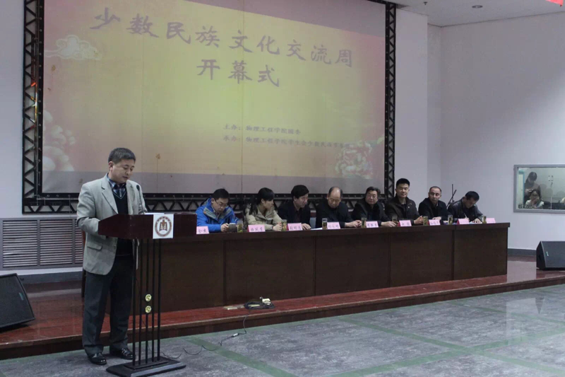 12月6日下午,由我院团委主办的少数民族文化交流周开幕式在大学生活动中心四楼会议室顺利举行。学生工作处处长杨永明,校团委副书记张明洁,K体育·(sports)官方网站党委书记李新乡,生命与科学学院党委副书记赵强,化学与化工学院党委副书记孙俊华,外国语学院党委副书记曲凤东,新疆新疆内派管理教师艾尼瓦尔·巴拉提和艾力江·买买提也出席了开幕式,团委书记王琼主持了开幕式。