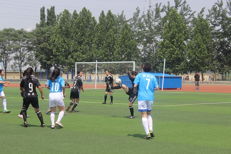 在点球大战中,我院守门员李放的精彩扑救以及队员们的高质量打门,引得场下观众欢呼不断,最终,我院17号队员贾晓慧和9号队员刘晓各进一球,以2:1的比分取得了决赛胜利,夺得冠军。