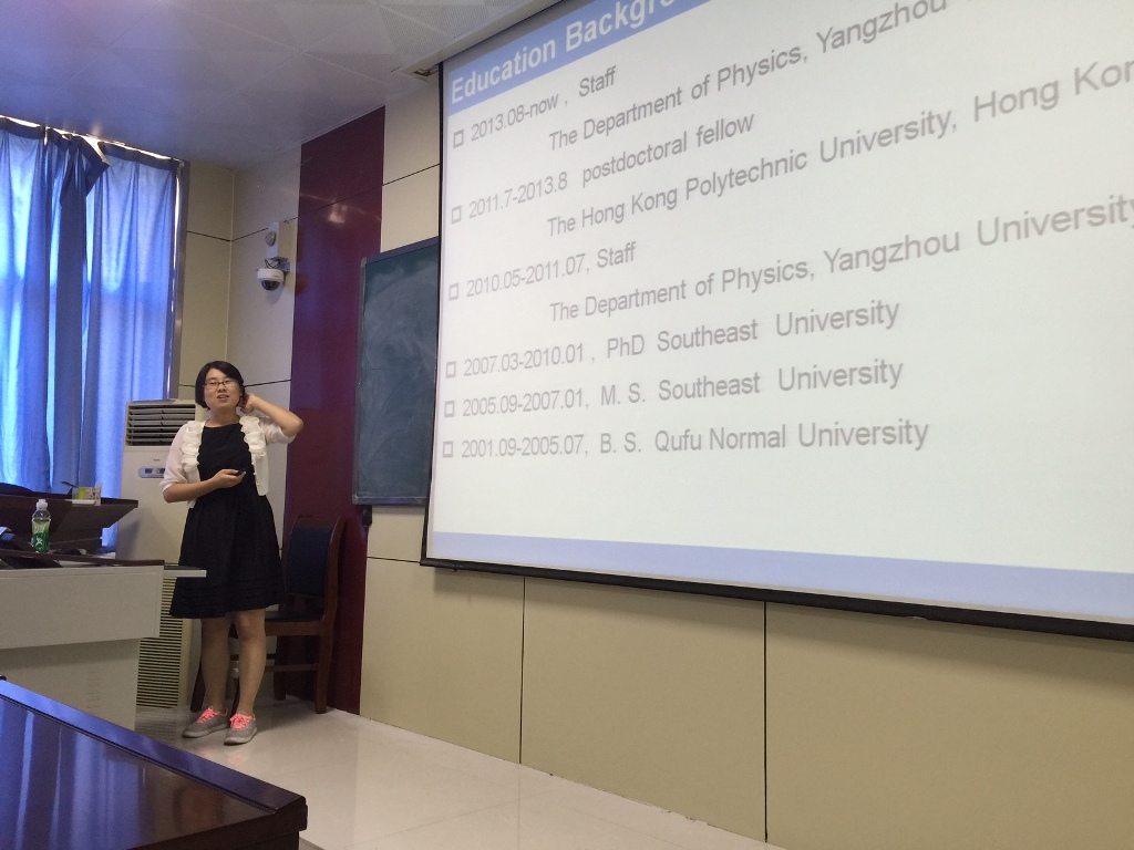 2016年9月9日下午,扬州大学张秀云博士为我院师生作了题为“Theoretical Insights into Low-Dimentional Nanomaterials”的学术报告。