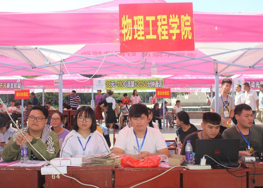 迎新现场,2017级同学以饱满的热情和热情的服务迎接每一位新生及家长,引导帮助新生办理一系列入学手续,一切都是紧张有序。本次迎新工作继续采用扫码报到和大数据实时汇总的方式,为新生报到提供了数字化便利。现场服务的往届同学根据各自分工主动带领新生前往学生公寓,帮助新生搬运行李并沿途介绍校园环境和建筑布局。学院楼前,综合咨询处的同学们为新生仔细解答疑惑并带领新生参观物理教学楼和实验楼,给他们讲解我院优秀毕业生和实验室等,使新生对我院学术氛围加深了解,激发大家的专业学习兴趣。整个迎新工作过程都在有条不紊地进行直至顺利结束。