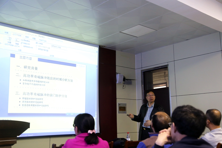 2018年4月25日上午,南京理工大学陈如山教授为我院师生作了题为《高功率电磁脉冲效应的建模分析与防护技术研究》的学术报告。