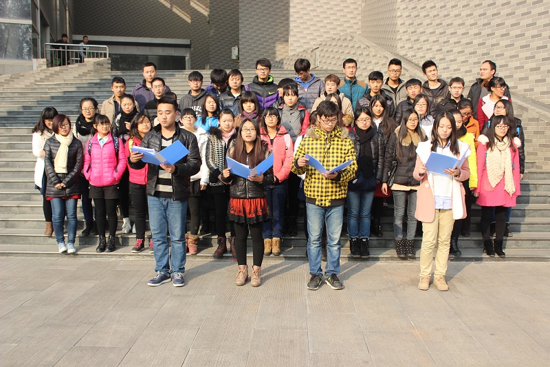 12月7日中午,我院在大学生活动中心礼堂及其南侧广场进行了“辞旧迎新,颂响中国梦”纪念“一二·九”大型朗诵比赛的第二次彩排。