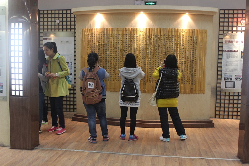 迈进校史馆,一股历史的厚重感便扑面而来。校史馆用丰富多彩的图片、详细的文字向同学们展示了曲园悠久的历史和别具特色的校园文化。同学们充满好奇地参观着,他们有的在展板前遐思,有的在实物展品前驻足。来自国际交流学院的泰国研究生陈明逵先生也参与了此次活动。