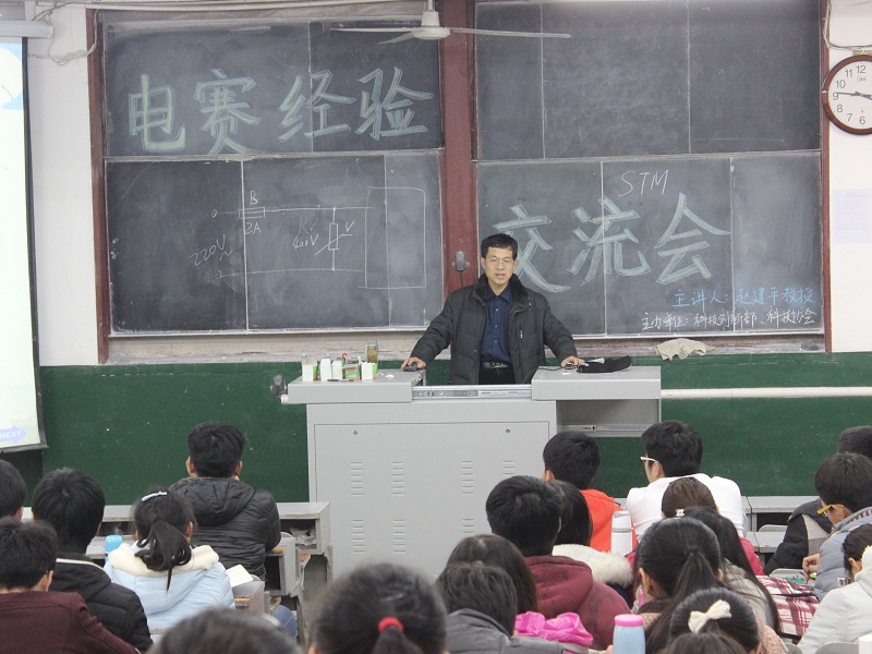125日下午,由学生工作处主办,学院学生会科技创新部、学校科技协会共同承办的“电子电路设计大赛经验交流会”在二阶一教室举行,该交流会由硕士生导师赵建平教授主讲,电子爱好者们积极参加。