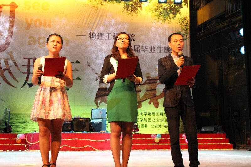 晚会高潮迭起,精彩纷呈。《匆匆那年》的歌声勾起了毕业生的无限回忆。毕业生代表的歌曲表演《我的好兄弟》体现了毕业生之间的深深情谊。王琼老师领颂的《毕业之歌》鼓励毕业生们扬起风帆,带着梦想远航。晚会中场互动中,全体师生给6月份过生日的毕业生送上礼物,毕业生们也表达了对母校的感激与不舍。随后的表演中,孙金杰老师带领2012级学生干部代表带来歌曲《祝你一路顺风》,将整场晚会推向新的高潮。最后,晚会在《一生有你》的悠扬歌声中圆满结束。