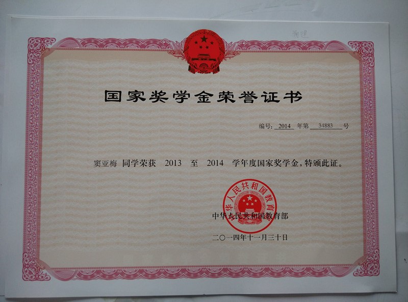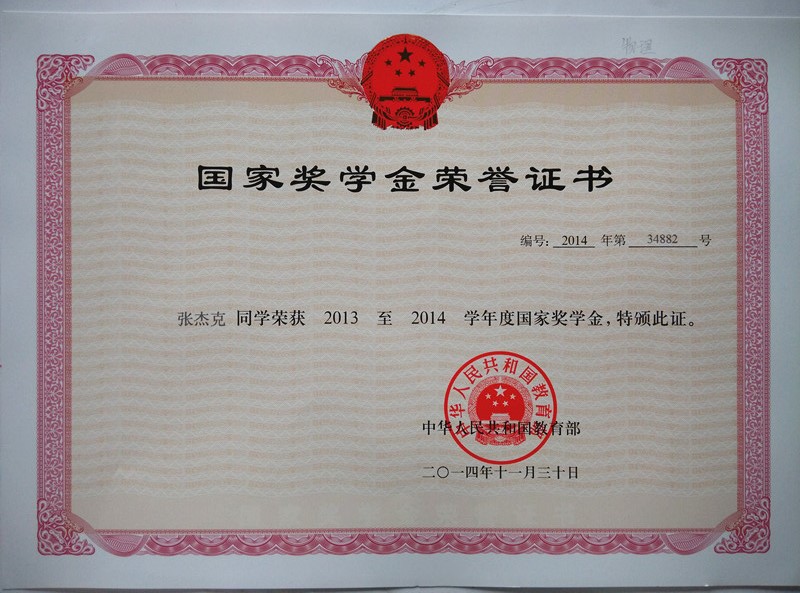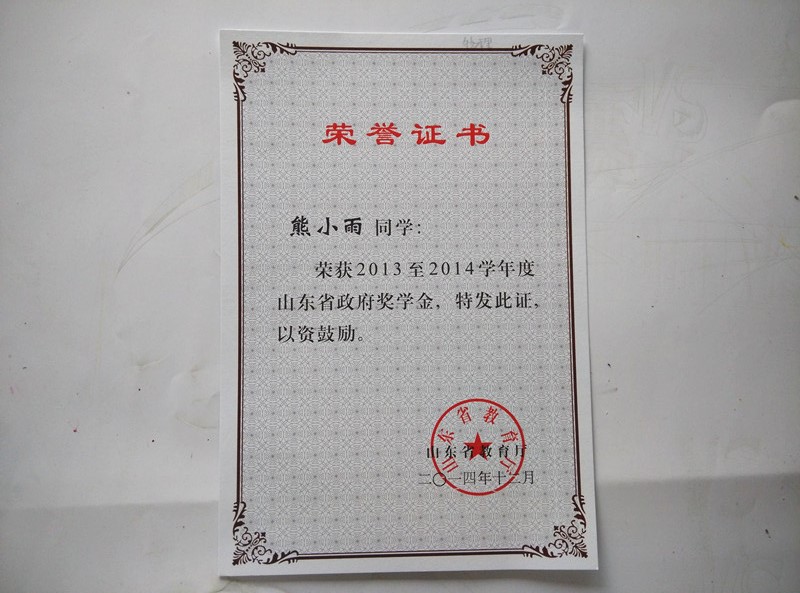 在2013—2014学年度中,我院学生在老师的悉心指导下认真学习,勇于实践,取得了优异的学习成果。其中,2011级张弘、2012级窦亚梅、2013级张杰克三位同学荣获2013至2014年度国家奖学金,2011级熊小雨同学荣获2013至2014学年度山东省政府奖学金。他们学习能力突出,实践技能丰富,为我院学生树立了榜样,充分彰显了我院学生良好的综合素质。