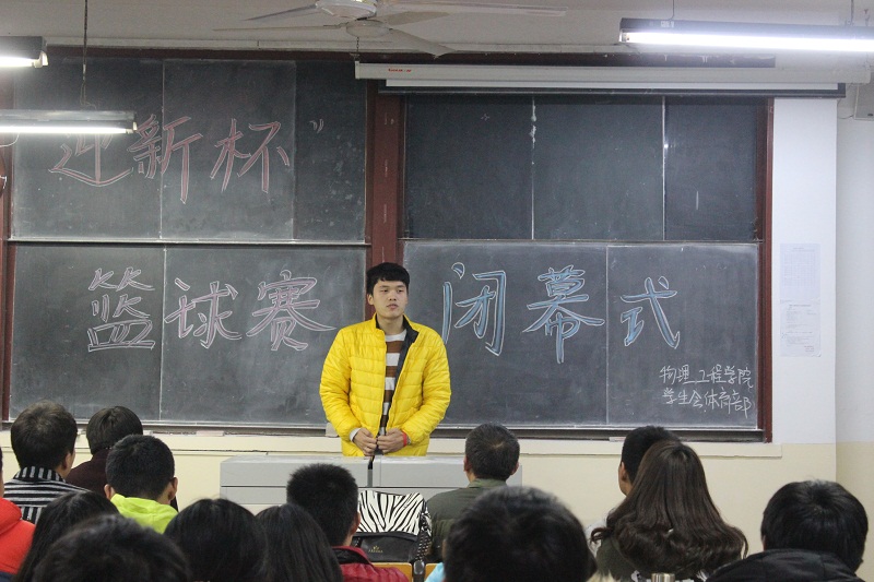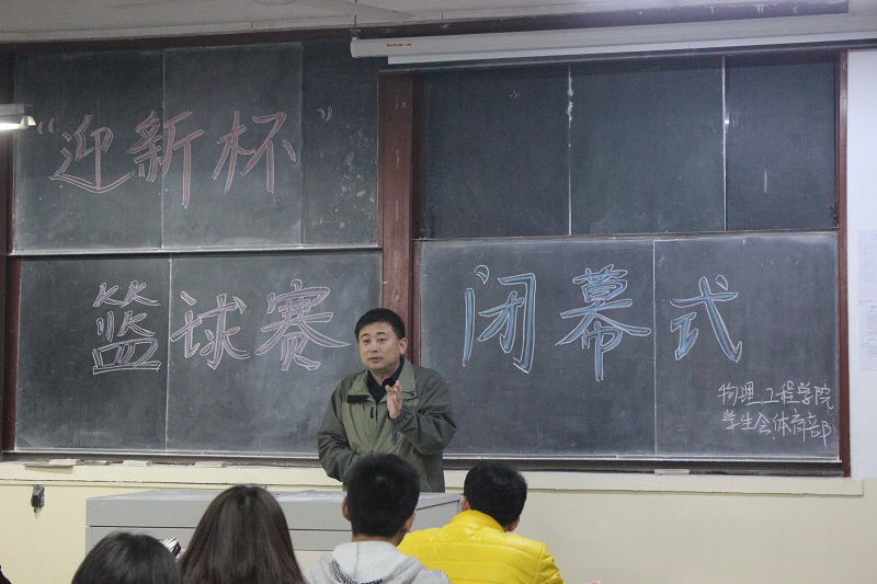11月23日下午,我院“迎新杯”篮球赛闭幕式在院楼210教室举行。学院党总支副书记孙金杰、学生会副主席李永超、体育部成员、篮球教练、篮球赛裁判员、获奖队员参加了本次闭幕式。