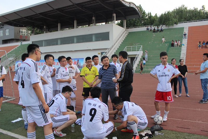 6月5日,“倍耐力”杯大学生足球赛第三场小组赛在南操场再燃战火。我院党总支副书记孙金杰,辅导员聂景兰老师在学生会工作人员的陪同下观看了比赛。本次小组赛由我院足球队对阵文学院足球队,经过两个小时的比拼,最终我院以7:1的比分完胜文学院,同时以小组赛三连胜的成绩顺利出线。