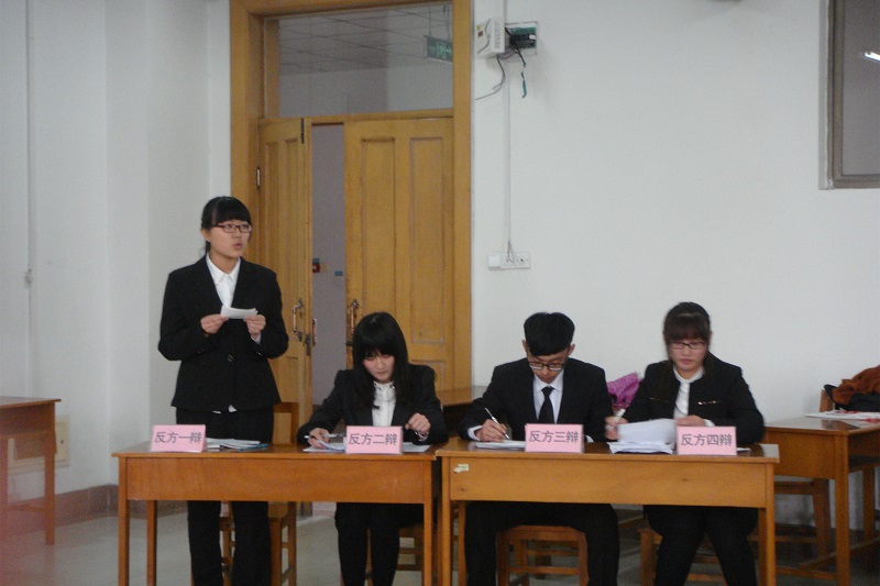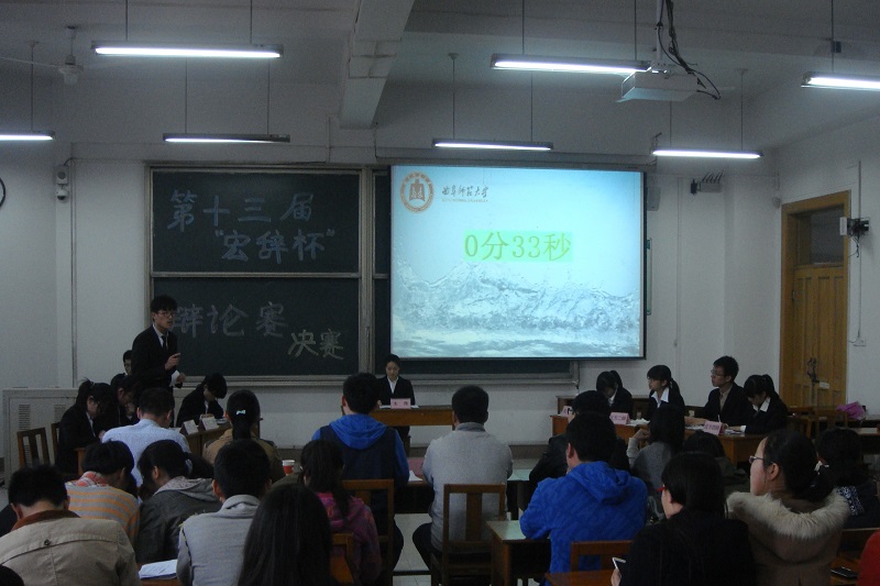 由我院团总支主办、学生会学习部承办的第十三届“宏辞杯”辩论赛决赛于4月12日下午在综合楼205教室进行。此次辩论赛决赛评委由校学生会及学院团总支学生会学生干部和历届“宏辞杯”辩论赛最佳辩手担任。