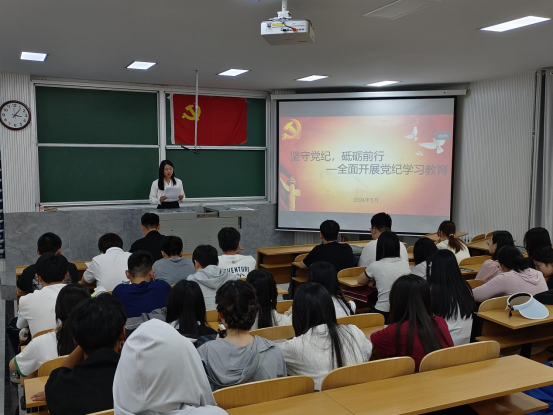本科生第一党支部书记颜冲以“学纪、知纪、明纪、守纪”为主题,围绕习近平总书记重要讲话指示、党纪建设历程,结合生动实例为本科生党员作讲解,激励全体党员深入领会开展党纪学习教育的必要性,推动党纪学习教育走深走实。