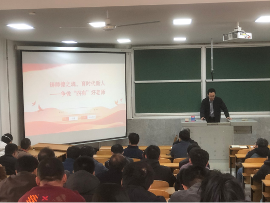 K体育·(sports)官方网站讯(通讯员:孔瑞 杨金涛 摄影:张谷天)为贯彻落实习近平总书记关于教育的重要论述,激励广大教师坚定理想信念,牢记“为党育人、为国育才”初心使命,充分发挥党建引领作用,3月19日,学院党委书记于健以”铸时代之魂,育时代新人“为题,于物理楼二阶一为全体教师讲授关于争做”四有“好老师主题党课。