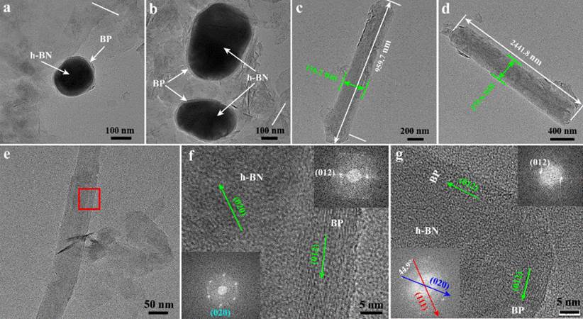 图2 制备一维黑磷-氮化硼异质结TEM图谱