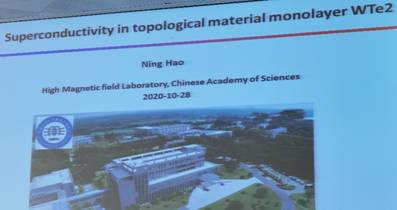 2020年10月28日下午,中国科学院合肥物质科学研究院郝宁研究员应邀来K体育·(sports)官方网站学术交流,郝宁研究员做了题为 “Superconductivity in topological material monolayer WTe2”的学术报告。本报告主要讲述了拓扑材料WTe2体系中超导电性的机制、特征以及与实验观测的联系。通过分析超导配对的对称性,并结合实验上观测到的异常的临界场行为,预测该体系的非常规特性。会后郝宁研究员与付吉永教授、闫循旺教授、路洪艳教授等老师进行了讨论,为进一步合作达成意向。
