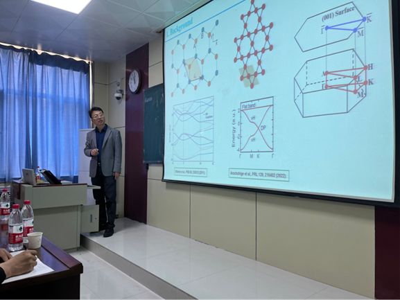 2023年4月11日,应张平教授邀请,中国科学院高能物理研究所-中国散裂中子源王保田副研究员来我院交流访问并作了题为“Superconductivity, CDW, and topological state in hexagonal materials”的学术报告,报告关注了具有丰富的物态的六方晶格体系。王教授课题组采用第一性原理计算、瓦尼尔轨道投影以及BCS理论等,研究了Pb插层1T-TiSe2、Cu2Si、CaB6、单层Sn以及Kagome晶格135及166体系的超导电性、CDW和拓扑态,分析了金属插层、压力、应变及载流子掺杂等对这些物态的调控,预测了一系列新体系,也为实验报道体系提供了详细的理论解释。