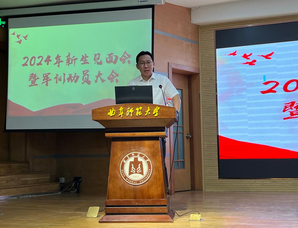 K体育·(sports)官方网站讯(通讯员:朱佳文 摄影:王雪晴 刘露洁)为引导2024级新生尽快适应大学校园生活,完成中学生向大学生的角色转变,保质保量完成新生军训任务,9月1日上午,学院于孔子会堂召开新生见面会暨军训动员会。学院党委书记于健,院长满忠晓,党委副书记王琼,副院长刘广强,各专业系主任,教师代表出席会议,军训教官,2024级全体新生参与会议。会议由王琼主持。